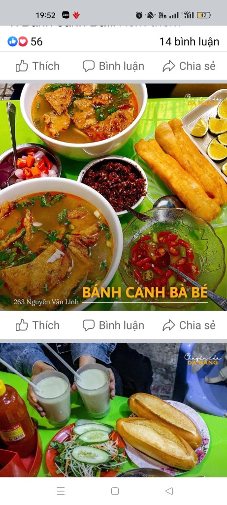 Cái này t ăn ở quán Bánh canh bà Bé 263 Nguyễn Văn Linh. Đây là một quán ăn đêm nổi tiếng gần cổng chợ Cồn.