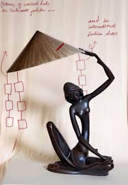 It is also crucial to demonstrate how easy it is to get Vietnamese elegance blended into international fashion. For this purpose, the traditional palm leaf conical hat can be the perfect example. Pictures of how Vietnamese and foreigners style conical hats (both in their fashionable shoots and their daily life) can be displayed around a real swaying conical hat on a small statue like this, so that people can interact with them. It won’t take much space, but it get observers engaged because the assortments are not shown inside just a boring book that no one feels curious about. Moreover, a statue like this can also be a trigger to get people take selfies in the booth and get it on social media.