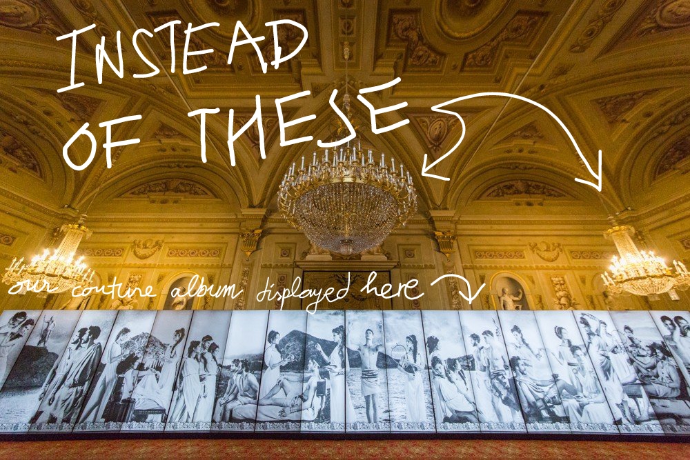 Couture designs speaks loud of the creativity capacity of a fashion brand, but are unfortunately too expensive to be shown at just any foreign trade booth, so it makes more sense for them to be introduced through images like how Karl Lagerfeld displayed his collection (as shown below). But I’d rather switch from luxurious chandeliers to conical hat lights to keep the booth generally cohesive.