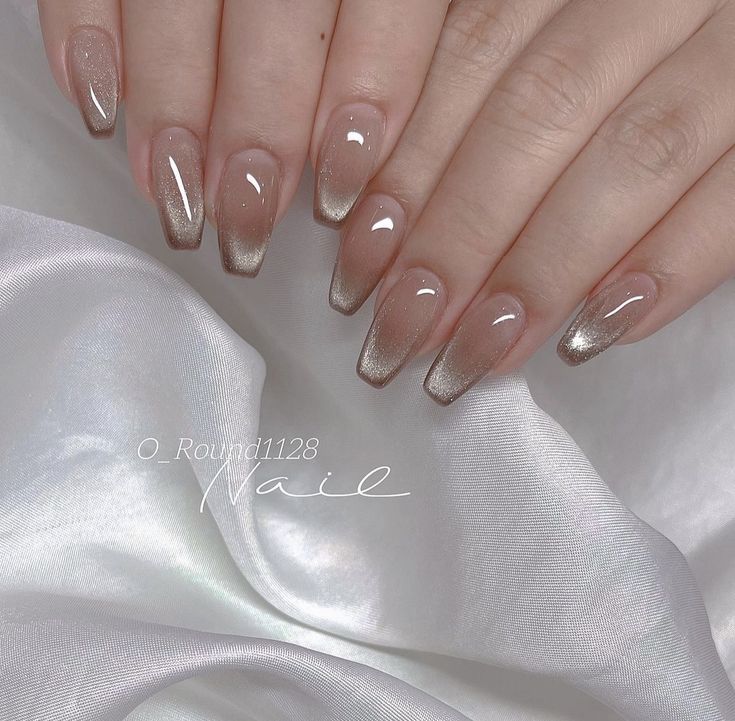 (Nude pink nails with cat-eye, high shine and golden lined effects)
