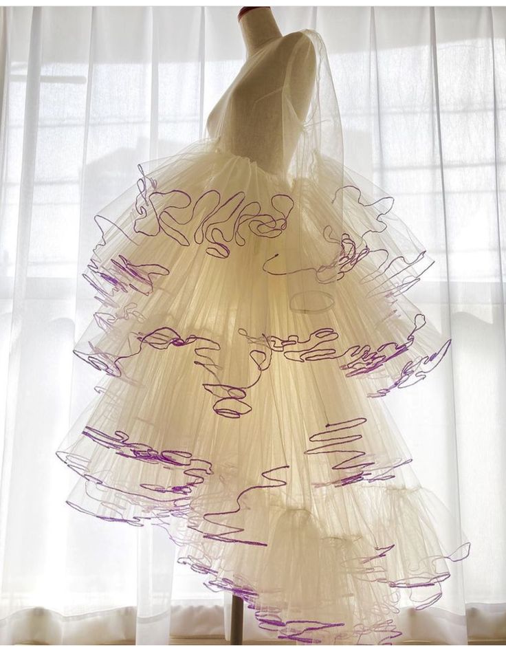 Vải organza xếp bèo viền sậm (Dark lined organza ruffles)