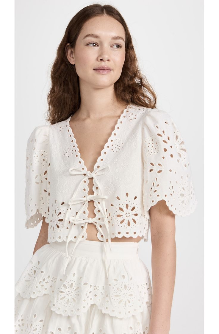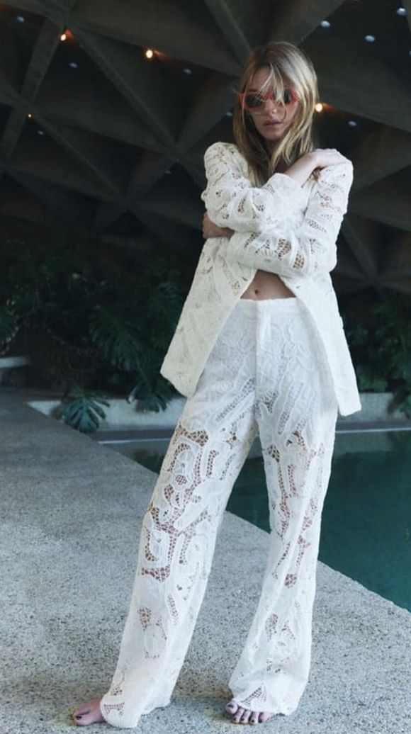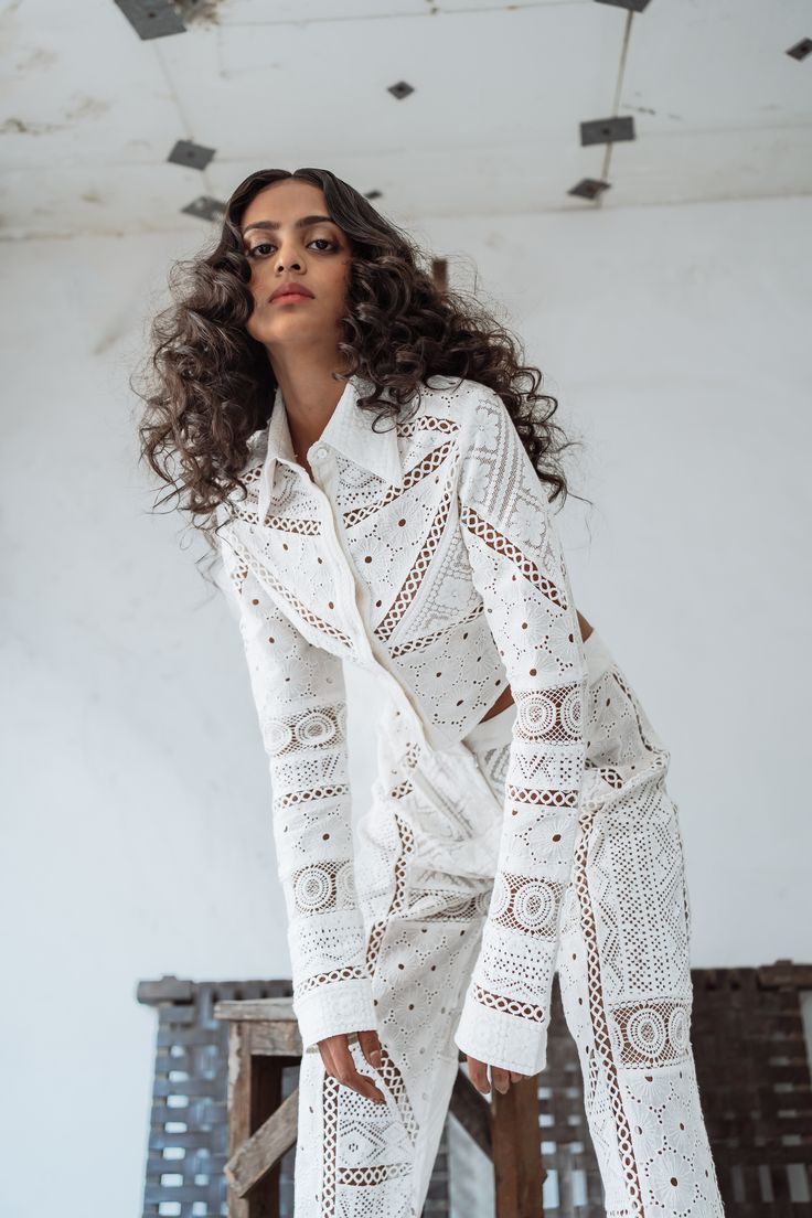 Set đồ trắng ren đục lỗ (White-on-white laser cut outfits)