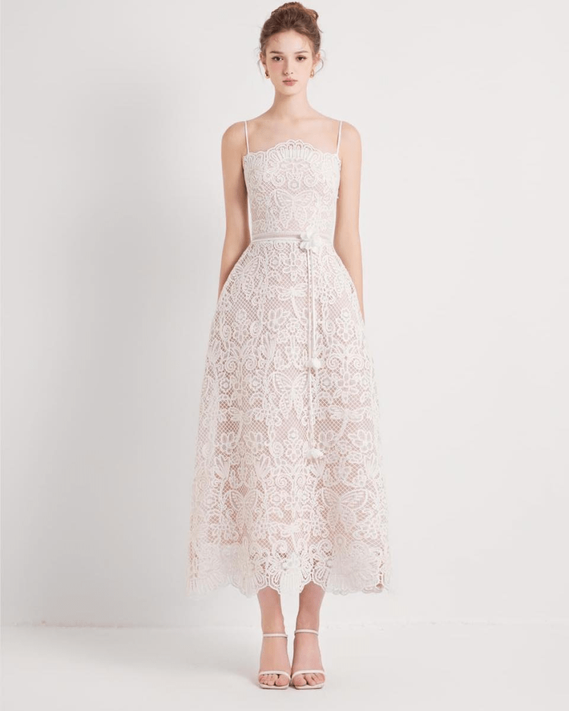 Một thiết kế áo dài xinh. T thích ý tưởng để ren thêu bên ngoài lớp lót hai dây, nhìn vừa mong manh vừa tinh tế