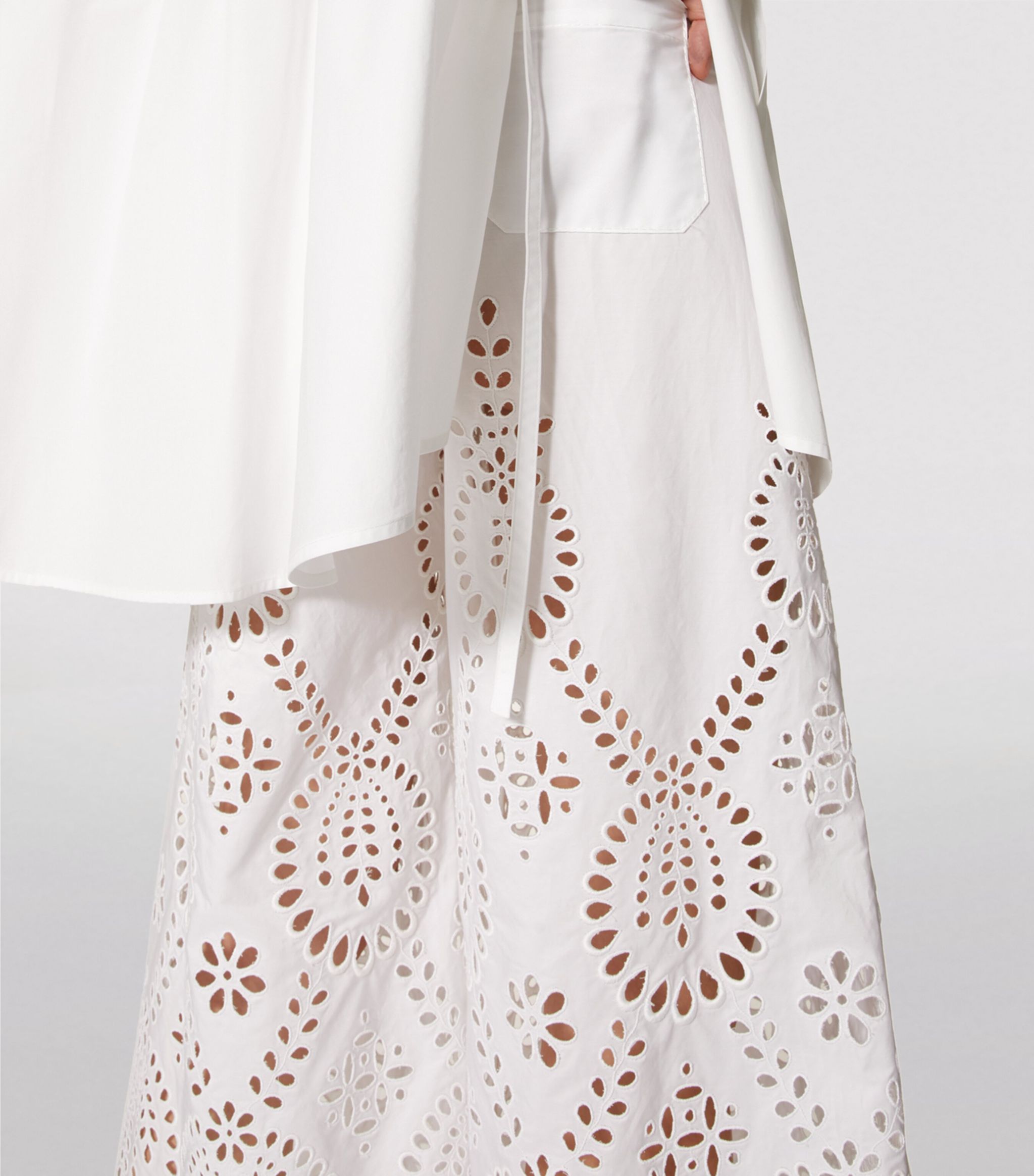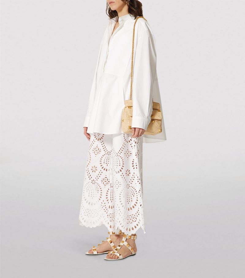 Một mẫu quần cullotte của Harrods có họa tiết dệt ren lỗ với viền trắng quanh các lỗ.
