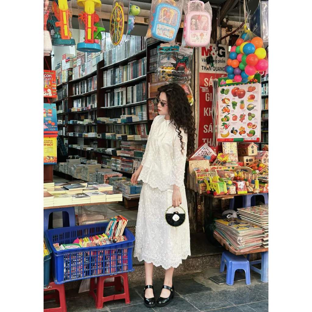 Chiếc tùng bí tưởng cute hột me nhưng vẫn trẻ trung và sang chảnh khi phối với ren hoa nhí