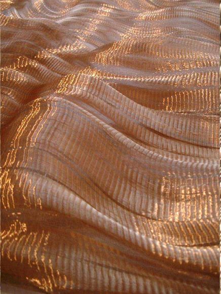 Thứ nhất, nó có hiệu ứng ánh sáng mờ, kiểu óng nhẹ chứ không rực hẳn lên như lụa nhân tạo, hiệu ứng này không chất liệu nào khác có được.