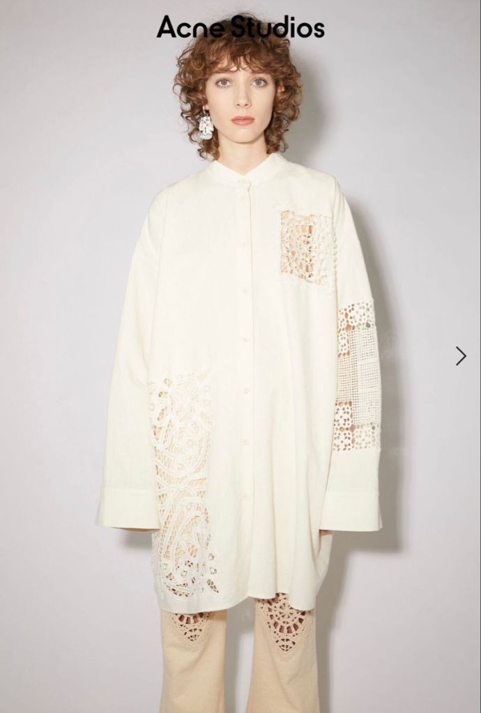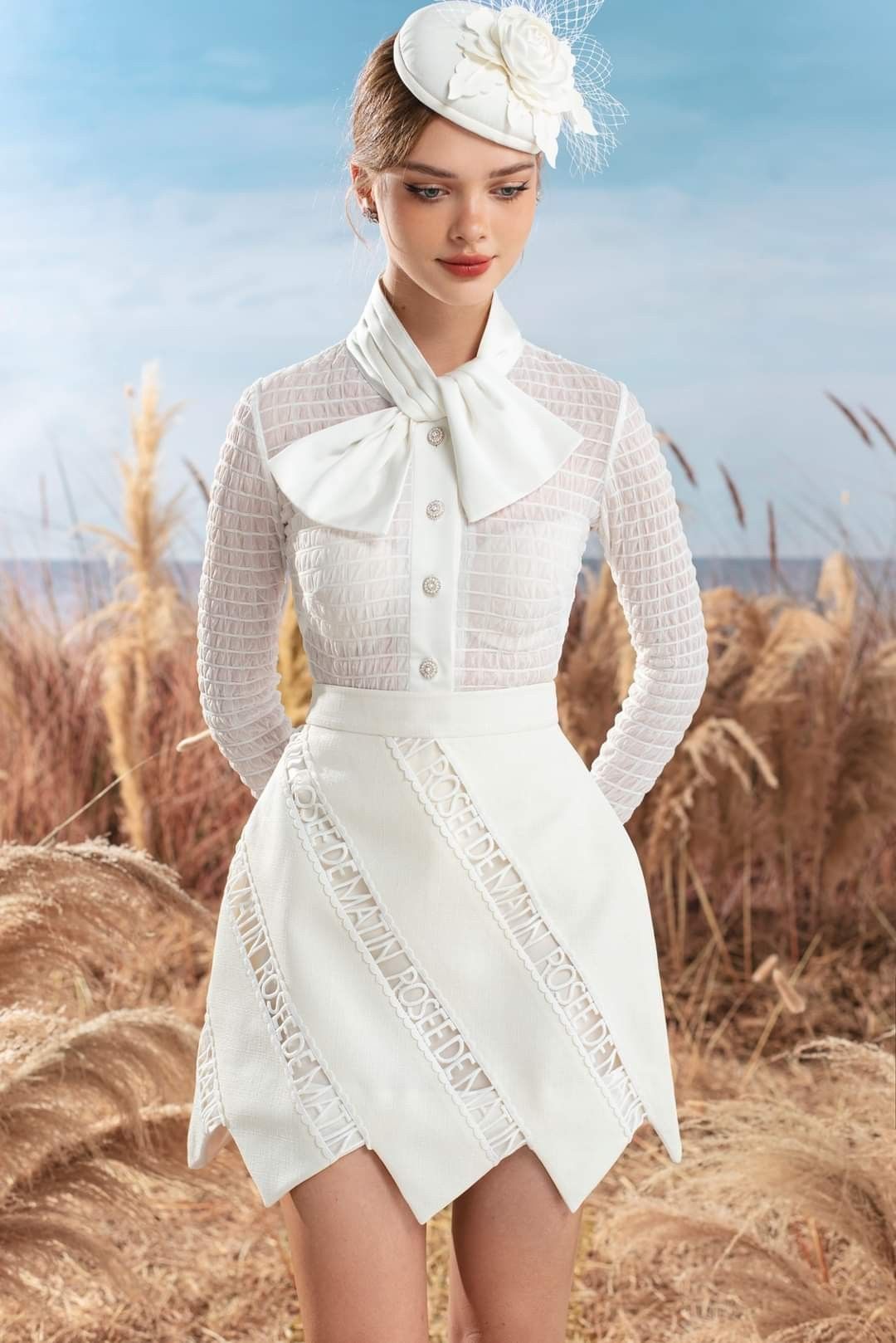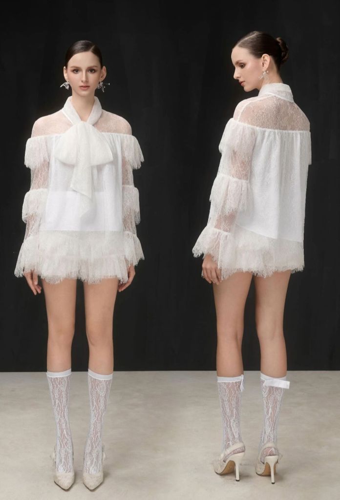 Những đường cắt cầu kỳ như hình dưới đây thì không còn hiếm nữa, các local brand hàng thiết kế đã khá phổ cập rồi. Tuy nhiên việc sử dụng dây ren giữa các mảng để tạo thêm độ phồng như vậy thì vẫn còn ít gặp, trong trí nhớ của t chỉ có mỗi Roseedematin là đang dùng nhiều kỹ thuật này.