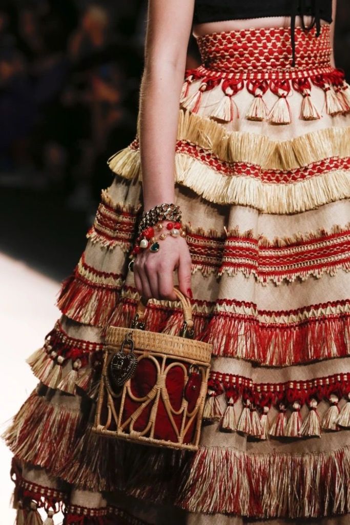 Ngay cả khi sử dụng những họa tiết mang hơi hướm dân tộc, không nhất định phải đúng 100% là họa tiết thổ cẩm, ví dụ như những trang phục dưới đây, thì cũng có thể đạt được hiệu quả thẩm mỹ mới mẻ, khác biệt.