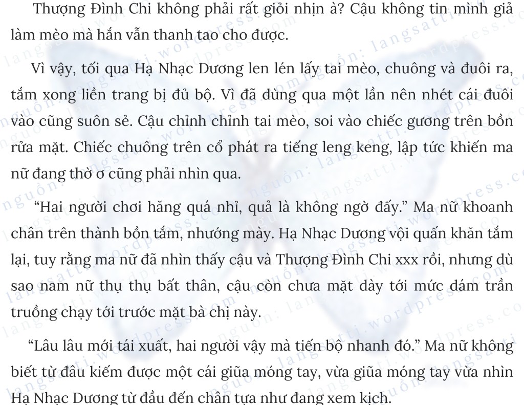 Hạ Nhạc Dương chớp chớp mắt không trả lời, Thượng Đình Chi lại hỏi: “Lại học từ ma nữ kia?”